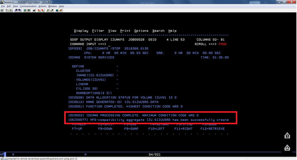 IOEZ00077I HFS-compatibility aggregate izu.sizuusrd has been successfully created.
